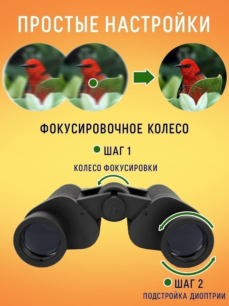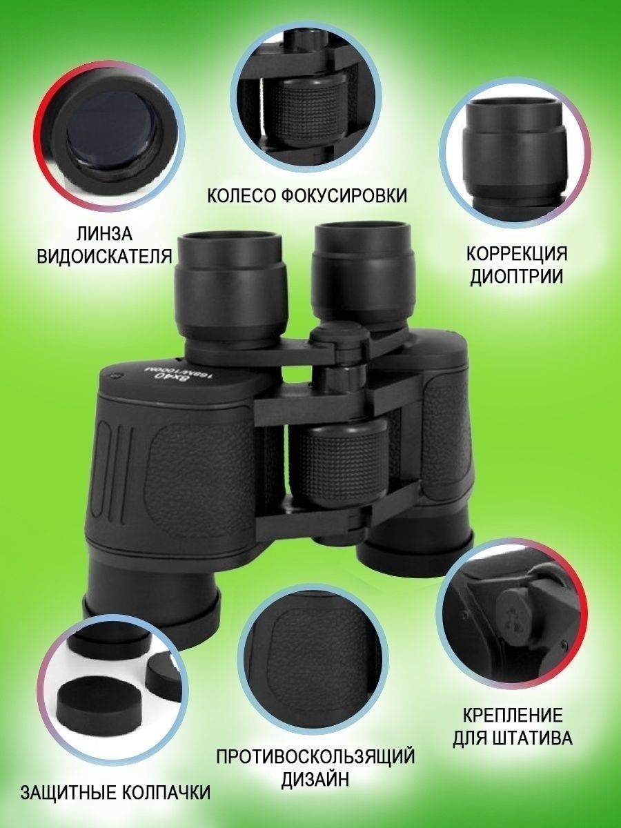Бинoкль обладает большим диаметром линзы объектива, что расширяет поле зрения и повышает яркость рассматриваемого объекта, сама линза имеет просветляющее покрытие для улучшения резкости и яркости изображения. Корпус бинокля выполнен из ударопрочного прорезиненного пластика, материал не боится падений с высоты человеческого роста.